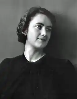 Tatlock struggled with her sexuality,[15] at one point writing to a friend that "there was a period when I thought I was homosexual. I still am, in a way, forced to believe it, but really, logically, I am sure that I can't be because of my un-masculinity."[16] She began seeing Robert Oppenheimer in 1936, when she was a graduate student and Oppenheimer was a professor of physics at Berkeley.[17] They met through his landlady, Mary Ellen Washburn, who was a member of the Communist Party, when Washburn held a fundraiser for communist-backed Spanish Republicans.[18][19]