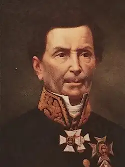 In 1842 he became a tax Conseiller.[1]: 140 After the French Revolution of 1848 took place in February, there was significant unrest in Luxembourg, especially in Ettelbruck from 12 to 23 March.[1]: 143 The Republican (that is to say, French) flag was raised, and this was imitated in several other localities.[1]: 143 On 15 March the government councilors Ulveling and Pescatore were delegated by the government to travel immediately to Ettelbruck and take whatever measures were necessary in the interests of public order, the law and the people.[1]: 143 Elections in order to draft a new constitution took place on 19 April.[1]: 143 Ulveling was elected as a member representing the canton of Wiltz to the Constituent Assembly that met in Ettelbruck, and helped write the new Constitution.[2][1]: 143 On 1 August 1848 he became Administrateur général (Minister) for Finance in the Fontaine Ministry and in December, after its resignation, he became Administrateur général for Communal Affairs in the Willmar Ministry.[3] When this was succeeded in 1853 by the Simons Ministry, Ulveling became a member of the executive board of the Hospices Civils and became a director of the Caisse de crédit foncier.[1]: 146 In 1855 he became director of the tax administration and in 1857 became director of the cadaster.[1]: 146