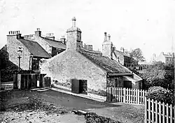 The so-called Jeanie Deans Cottage was situated at the southern end of St. Leonards Bank, Edinburgh. In the novel, Davie Deans was a dairy farmer (or cow-feeder) who moved to "a place called Saint Leonard's Crags, lying betwixt Edinburgh and the mountain called Arthur's Seat, and adjoining to the extensive sheep pasture still named the King's Park.... Here he rented a small lonely house, about half a mile distant from the nearest point of the city, but the site of which, with all the adjacent ground, is now occupied by the buildings which form the south-eastern suburb."[9] St. Leonard's Crags itself is a few hundred metres to the north of the would-be Jeanie Deans Cottage and is now occupied by the building which was the James Clark School (now converted to flats).[10] However, this cottage features in a map of Edinburgh as early as 1784.[11] The same cottage is named as 'Herds house' in a map of 1823.[12] The cottage was demolished in 1965.[13]