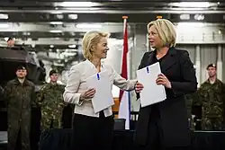 Following the election of 2012 and after the cabinet formation the Second Rutte cabinet was formed with Hennis-Plasschaert becoming Minister of Defence. She stepped down as a member of the House of Representatives on 5 November 2012, the same day she took office as Minister of Defence.[1] She served as Minister of Defence until her resignation on 4 October 2017.[2][3] After the election of 2017 she returned as a member of the House of Representatives, serving from 23 March 2017 until 13 September 2018. She was appointed Special Representative of the Secretary-General for the United Nations Assistance Mission for Iraq on 1 November 2018.
