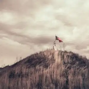 Michna-Bales's photo essay entailed four years of research and took the form of exhibitions and a book.[20] It included more than 90 color photographs juxtaposed with period documents, news clippings, letters, announcements and vignettes (some digitally tinted to resemble turn-of-the-century autochromes). Among them was a reproduction of a 1916 Rand-McNally railroad map that Michna-Bales hand-embroidered with a yellow stitched line marking Milholland’s journey.[23][5][8] The photographs consisted of painterly landscapes chronicling vistas, flora and fauna that Milholland described in letters as well as staged still life and re-enactment images using diverse stand-ins to depict moments in her journey.[8][5][38] The series opens with Ready for Battle (2019)—an image of a woman in a suffrage dress, sash and crown holding an American flag like a sentinel atop a grassy hill—and closes with Transitioning (2019), which shows a woman in a white dress wading into the waves of the Pacific Ocean; a series of hazy, out-of-focus photographs allude to Milholland's deteriorating health and the delusional visions brought on by her turn-of-the-century prescriptions.[1][8][23]