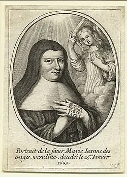 ![]() Portrait of Sister Marie Ieanne des Anges, Ursuline, died on the 29th. Ianvier 1665. | |