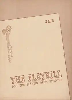 Due in part to high production costs and relatively low revenue the play closed after only seven performances.[2]: 96 However, Jeb garnered widespread critical praise.[6] The reviewer for Billboard wrote, “Robert Ardrey has scripted a drama that has the guts and the power to make you angry… Jeb is absorbing from curtain to curtain.”[7] George Jean Nathan called it "A more dynamic play than any recent exhibit dealing with the Negro’s difficulties in a country dominated by whites."[8] And Howard Barnes, reviewing for the New York Herald Tribune, wrote "A play which I would not have missed… Drama of high eloquence and indignation… Robert Ardrey has considered the subject squarely and savagely."[8]