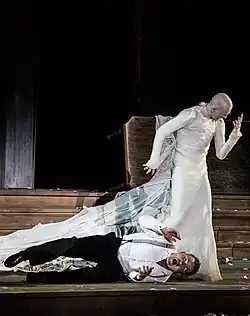 ![]() Cornelius Obonya and Peter Lohmeyer portraying Jedermann and Tod at the Salzburg Festival in 2014 | |