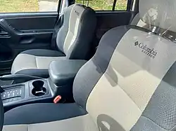 The Columbia Edition, launched in November 2003 (2003/10/06 SOP) was a partnership between Jeep and sportswear manufacturer Columbia for MY2004.[3] Based on the base Laredo trim, the Columbia Edition added these features: a full-sized spare tire and spare wheel, seventeen-inch alloy wheels, unique two-toned cloth seating surfaces, dual power front bucket seats, an AM/FM stereo with cassette and CD players, a premium 180-watt Infinity Gold audio system with six speakers, Bright Silver Metallic-painted body-side cladding panels and front and rear bumpers, and 'Columbia Edition' emblems on both front doors. Columbia Edition buyers also received a complimentary Columbia "Bugaboo" parka when their new vehicle was delivered.[3]