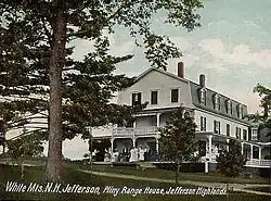 During the early 1900s, Jefferson was a popular summer resort, boasting one of the largest "grand hotels" in the White Mountains—the Waumbek, with accommodations for nearly 300 guests. The hotel had its own rail branch, to deliver guests directly to the hotel from Boston and New York without changing trains. It was destroyed by fire on May 9, 1928.