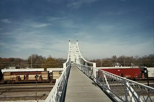 Jefferson Avenue Footbridge is a historic footbridge located in Springfield, Missouri, United States. Built in 1902, it measures 562-foot (171 m) long and allows pedestrians to cross 13 sets of railroad tracks.[2]