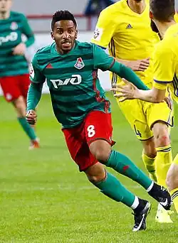 On 28 January 2017, he signed with the Russian Premier League side FC Lokomotiv Moscow.[16] The Russian team announced his signing after an irregular 2016, where he even was inactive for a hundred days after finishing in October 2016 a millionaire contract with Al Jazira. After 6 months of recovery, Farfán had a good season making goals that allowed his team to get the national title after 14 years, becoming the third top goalscorer of the season with 10 goals and 4 assists.[17]