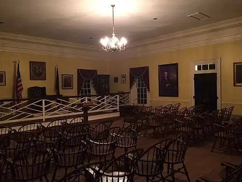 The Jefferson Literary and Debating Society (commonly known as "Jeff Society" or "Jeff Soc") is the oldest continuously existing collegiate debating society in North America. The society was founded on July 14, 1825, in Room Seven, West Lawn at the University of Virginia by 16 disgruntled members of the Patrick Henry Society.[1] Named for the founder of the University, Thomas Jefferson, the society regularly meets on Friday evenings at "The Hall" in the Lawn.