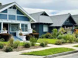 By 1903, there were trolley cars running down Jefferson and Adams Boulevard. With easy access to downtown, Jefferson Park became a desirable place to build a home.[2][4] Developed from 1905 to 1920, Jefferson Park grew to approximately 2500 homes spread over 50 square blocks.[4] Centered along Jefferson Boulevard, the neighborhood is home to Craftsman bungalows, brick warehouses, colorful wall murals and small storefronts.[5]
