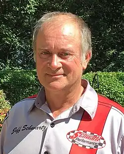 Jeff Schwartz is an American protouring car builder/designer and former professional road racer who brought to market the first Bolt-in Muscle Car Chassis for GM A-body cars.[1] In his modified and equipped cars, Schwartz is a six-time winner of the Car Craft Magazine's Real Street Eliminator competition with his fifth and sixth win at the ProAm Invitational in Milwaukee, WI in 2015.[2] [3][4] In 2013, Schwartz won "Popular Hot Rodding Magazine's Muscle Car of the Year" with his 1981 Twin Turbo TransAm [5] and was voted Car Craft Magazine's "Pro-Builder of the Year" with Jake Wallace's Twin Turbo 1967 Chevy Malibu.[6][7] In 2017, Schwartz and his crew won his second Car Craft Pro-Builder Award with a right hand drive 1970 Cuda.[8][9] He is the owner of Schwartz Performance in Harvard, IL, the founder of the Schwartz Motocross History Museum in McHenry County, IL and the father of two children.