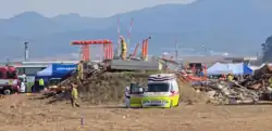 By 1:36 p.m., the firefighters had switched to search operations to recover bodies.[49] A temporary morgue was set up in an airport hangar[50] to handle the bodies recovered from the wreckage, and a waiting room was created for family members of the occupants at the airport with civil servants assigned to each family for support while they awaited news from the crash.[51] Tents were also erected inside the airport to temporarily house arriving family members.[52] Later at night, the family members were temporarily accommodated at the dormitories of Mokpo National University.[53]