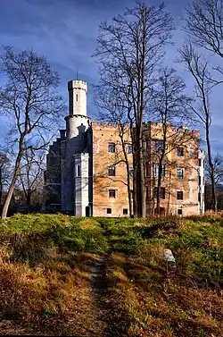 After World War II the Communist Red Army occupied the palace. Since 1951 the Polish state used it as a school and largely destroyed the interior. Today parts of the exterior are renovated and most of the park is preserved, even though some important view shafts are overgrown.