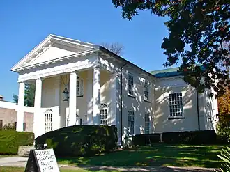 The original building was built in 1839, and was then expanded between 1909 and 1910. It is a two-story, fieldstone building with a gable roof and a one-story rear wing and addition. It features a two-story, columned portico with a flagstone floor. The Reading Room and Lambert Memorial Room have notable decorations.[2]