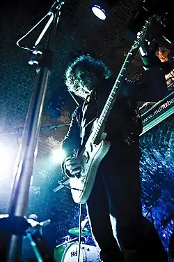 Jennifer Rostock's line-up consists of lead vocalist Jennifer Weist, keyboardist Johannes "Joe" Walter-Müller, guitarist Alex, bassist Christoph, and drummer Baku.[1] The group's unconventional German lyrics are collectively written by Weist and Walter-Müller who also compose and arrange the songs.[3] Although difficult to categorise, Jennifer Rostock are sometimes compared to the Neue Deutsche Welle, especially due to their first single, "Kopf oder Zahl", and its similarities to the German 1980's band Ideal. The German newspaper die tageszeitung described their music as "between glam punk, electropop and Berlin-rock".[10] They have also been described as mixing alternative rock with punk and electro.[11]
