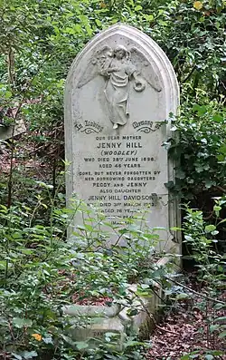 Hill died in 1896 of pulmonary tuberculosis at her daughter Peggy's home in London, aged 48.[4] She is buried in Nunhead Cemetery in London.