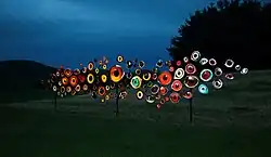 Kendler's work often takes the form of large-scale, often interactive, outdoor works or community co-created projects in 'unconventional' locations such as a Costa Rican tropical forest, an Arizona desert, a series of Chicago community gardens or in the fern room at the Lincoln Park Conservatory.[18] She also presents exhibitions, projects and workshops at cultural venues including the Albright-Knox Art Gallery,[19] the Pulitzer Arts Foundation,[20] the Museum of Contemporary Art, Chicago,[21] the Indianapolis Museum of Contemporary Art,[22] the DePaul Art Museum,[23] the Kochi-Muziris Biennale,[24] the Chicago Biennial at the Elmhurst Art Museum,[25] the Terrain Biennial[26] Exit Art, the Arts Club of Chicago and at Storm King Art Center for their 2018 exhibition Indicators: Artists on Climate Change.[27]