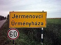 Jermenovci (Serbian: Jermenovci or Јермeновци; Hungarian: Ürményháza; German: Ürmenhausen) is a village located in the Plandište municipality, in the South Banat District of Serbia. It is situated in the Autonomous Province of Vojvodina. The village has a Hungarian ethnic majority (69.11%).