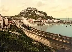 The line began at Saint Helier, with intermediate stations located at Georgetown, Samarès, Le Hocq, Pontac, La Rocque and Fauvic, with the eastern terminus in Grouville, originally opposite the Wimbledon Hotel, later extended to Gorey and then to Gorey Pier.[4]
