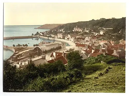 In 1864, the States of Jersey passed a law authorising the construction of the island's first railway. This standard gauge line was constructed, connecting St. Helier to St. Aubin, and the first train ran 25 October 1870.[1] This railway was not a success and the company declared bankruptcy in 1874. The railway continued to operate but passed through a succession of proprietors until 1883.