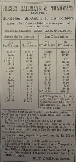 - ^ "The New Railway to the Corbiere". Jersey Independent and Daily Telegraph. Jersey. 6 September 1884. Retrieved 18 March 2024 – via British Newspaper Archive.