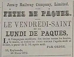 - ^ "St. Aubin's and La Moye Railway". Jersey Independent and Daily Telegraph. Jersey. 16 August 1873. Retrieved 18 March 2024 – via British Newspaper Archive.
