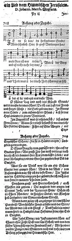 - ^ a b Schöne, Albrecht, ed. (1988). "Jerusalem, du hochgebaute Stadt (nach dem Erstdruck 1626)". Das Zeitalter des Barock. Texte und Zeugnisse (in German). Munich: C. H. Beck. pp. 200–202. ISBN 978-3-406-33418-4.