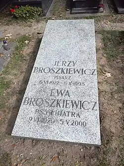 Broszkiewicz suffered from schizophrenia.[1] He died on 4 October 1993 in Kraków[1][2][3] and is interred in the aleja zasłuźonych at the Rakowicki Cemetery (section LXIX, row B-2-2).[9]