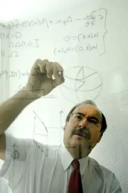 He was influential in the reformation of the Spanish Royal Society of Mathematics in 1997, after it had been inactive for several years.[10] As a member of the Spanish Royal Academy of Sciences, he worked to modernize the academy's activities. He was the founder of the mathematics section of the Journal of the Spanish Royal Academy of Sciences, Series A Mathematics (RACSAM), serving as editor-in-chief from 2001 to 2005. He encouraged links between the academy and the French Academy of Sciences, co-organizing a joint congress "Les Mathématiques et l'environnement", held in Paris.[10]