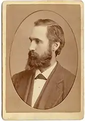 Jesse Macy, the thirteenth of fourteen children, was born to Quaker parents in Indiana, but the family moved to central Iowa in 1856[3] and started farming outside Lynnville, near the newly founded town of Grinnell.[4] At age 17, he entered Iowa College, now Grinnell College. During the Civil War, he served in the Union army[3] and he did not graduate until after the war, earning an A.B. in 1870.[5]