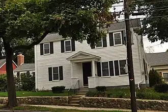 The Jesse Tay House is a historic house at 51 Elm Street in Stoneham, Massachusetts. The two-story wood-frame house, built c. 1810 for Jesse Tay, is one of Stoneham's best-preserved Federal style houses. It has a side-gable roof, asymmetrically placed chimneys, and a four-bay facade with irregular placement of windows and entrance. The entrance is sheltered by a portico with a fully pedimented gable, and square supporting posts. Ells project to the rear and left side. Tay was a farmer and shoemaker, and it is possible that one of the additions was used by him or other family members for the home-based manufacture of shoes.[2]