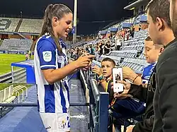 In July 2023, she signed with Spanish club Sporting de Huelva in the first tier Liga F.[22][23] On November 8, 2023, she scored the winning goal in a 1-0 victory over Real Unión de Tenerife to help the team advance to the Round of 16 in the 2023–24 Copa de la Reina de Fútbol.[24]