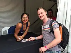 Mauboy has also contributed to Indigenous organisations aimed at improving children's education.[233][234] In 2009, she became a spokesperson for the Indigenous Literacy Project (ILP), which aims to provide "books and learning materials to schools, libraries and women's centres in remote areas". As spokesperson for the charity, Mauboy visited schools across Australia and talked to students about the importance of education.[235] In 2011, she worked with the Yalari organisation "that offers children from regional, rural and remote communities and towns across Australia the opportunity to get a first-class secondary education".[234] In 2013, Mauboy was appointed as the ambassador of the independent Aboriginal Yipirinya School in Alice Springs.[126][236] Along with making several visits to the school, Mauboy has helped promote the school and assist with its fundraisings.[236][237] In August 2015, she became an ambassador for the Indigenous Literacy Foundation, which raises support and awareness of literacy in remote indigenous communities.[238] Her songs have been included on charity compilation albums such as Bushfire Aid: Artists for the Bushfire Appeal (2009),[239] Spirit of Christmas (2009),[240] and Flood Relief – Artists for the Flood Appeal (2011).[241] Mauboy along with Guy Sebastian, Sheppard, Jon Stevens, Shannon Noll and Megan Washington were featured on Lee Kernaghan's 2015 charity single "Spirit of the Anzacs", which raised funds for Legacy and Soldier On.[242]