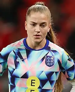 She made her first senior start for England in the 2023 Arnold Clark Cup against Italy in a 2–1 win on 19 February,[61][62] as well as coming on as a substitute against Belgium in a 6–1 victory,[63] with the Lionesses winning the tournament for the second consecutive year.[61]