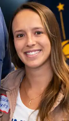Jessica Parratto is an eight-time USA Diving National Champion in women's platform and platform synchro. At the age of 17 she competed at her first world event, the 2015 World Aquatics Championships.[2] Parratto placed 10th in the Women's 10m Platform at the 2016 Summer Olympics in Rio.[3] She competed at the 2020 Summer Olympics in the Women's Synchronized Platform with partner Delaney Schnell, placing second and winning the first ever Olympic medal for the United States in that event.[4]