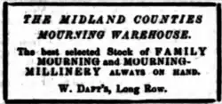 - ^ "William Daft, Silk Mercer, Haberdasher, &c". Nottingham Review and General Advertiser for the Midland Counties. England. 27 March 1840. Retrieved 12 March 2018 – via British Newspaper Archive.