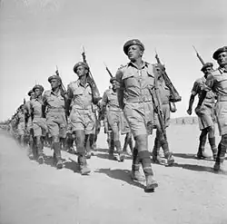 The Jewish Infantry Brigade Group,[1] more commonly known as the Jewish Brigade Group[2] or Jewish Brigade,[3] was a military formation of the British Army in the Second World War. It was formed in late 1944[1][2] and was recruited among Yishuv Jews from Mandatory Palestine and commanded by Anglo-Jewish officers. It served in the latter stages of the Italian Campaign, and was disbanded in 1946.