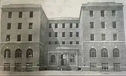 After a year of fund-raising the organization finally began construction on September 9, 1926. Ground-breaking ceremonies took place on Rutland Road and East 49th street which is the present day location of the hospital campus. The man of honor selected to break ground was New York State Deputy Attorney General Israel M. Lerner.[11][12] On June 27, 1927, the ceremonial first cornerstone was placed before an audience of 300 people who pledged themselves to help in the construction of the first building and marked the beginning of a reevaluated campaign to raise $250,000 for the cost of construction of the hospital.[13] By February 1928, the shell of the new five-story building which was planned to accommodate 250 beds was built, but another $50,000 was needed to finish the structural work and furnish it with equipment.[14][15][16] On October 14, 1928, a dedication ceremony was attended by 2,000 people to mark the completion of the building which today is called the Lefrak building.[17][18] The building was divided into wards containing 22 to 35 beds, with a sun porch adjacent to every ward.[19] Although the construction of the building was complete finicial setbacks prevented the admission of patients until the spring of 1929. After four months of raising money, the hospital officially opened its doors to patients on April 24, 1929.[5][19][20][21][22][23][24][25] On its opening day, fifty-two men and women were taken by automobile and wheelchair from Kings County Hospital Center[5] The hospital quickly filled to its capacity of 300 patients and decided to expand to deal with the constant pressure of new patients. In a speech given by Blumberg in a fundraising party, he said, "Our wards are always filled to capacity, we are the only institution of this kind in Brooklyn and we must expand if we are to care for the needy who come to us for aid."[26] In April 1930, a new wing containing a physiotherapy and dental laboratory was added.[27][28][29]