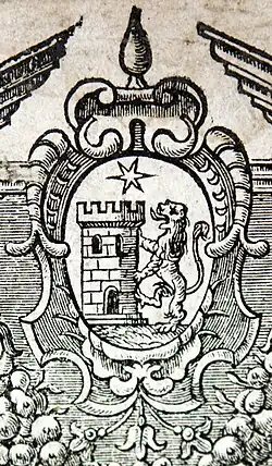The trend of Jewish Heraldry was accelerated in the 16th century, especially in Amsterdam and parts of Italy, where several Jews obtained chairs at universities in Perugia, Ferrara, Bologna in 1528, and Rome in 1539, which in some cases carried with them personal nobility. One Jew of Bologna even received a knighthood from Charles V. In the early 17th century, several wealthy Western Sephardic Jews immigrated to Amsterdam and with them, brought in great economic prosperity to the city. Many Dutch Jews were granted minor noble titles and given the rights to bear arms. Such as the Benveniste family who, when emigrating to the Amsterdam adopted a new arms which included the Star of David, a lion cub of Judah a castle and 10 moons (the Kabbalist symbols of the 10 Sefirot). This was a common trend of the Dutch Jewish community who adopted arms which were not overtly Jewish, yet had several deeply rooted Jewish symbolisms. Jewish Heraldry also spread to the Holy Roman Empire in the late 17th when the laws against Jews carrying arms became more relaxed. The first Jew in the HRE to receive a grant of arms was Jacob Batsheba Schmieles who was ennobled at the same time, having in 1622 been made a knight of the Holy Roman Empire with the title of *Bassevi von Treuenberg. (Sable, on a bend argent between two lions passant bendwise or, three eight-pointed stars gules)[3][4][5]