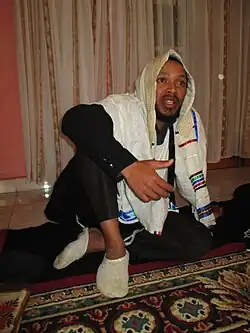 The Église du Judaïsme Hébraïque is a charismatic cult in Madagascar led by the Judaic mystic Rivo Lala (also called "Kohen Rivolala"), whose teachings circulate via the internet.[4] Nathan Devir describes Lala's religion as "a mélange of spiritualism, Catholicism, and theosophy with a healthy dose of Aaronite-descent propaganda and a cultlike emphasis on his own supernatural abilities". Lala's followers are described as wearing kippot and flowing tunics similar to Arabian thawbs.[11] In 2012, Lala publicly claimed that he could guarantee a return to acceptance and power for the then-exiled former President of Madagascar Marc Ravalomanana "if he accepts me as [his] rabbi and agrees to follow the religion of Hebraic Judaism".[11][82] Lala has been arrested several times, and in November 2015 was arrested in Miandrivazo for "witchcraft against around fifty high school girls" after authorities alleged to have found wooden idols in his car.[83][11] His arrest incited a frenzy in the town, with the families of the allegedly possessed girls demanding that Lala be handed over to them.[84] He was sentenced to one year in prison for witchcraft in January 2016, and was acquitted in June of that year.[85][86]