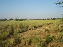 Grasses are important in Jhang District because they form pasturage for livestock.[5] The most common grass in the district is the chhimbar, which thrives in all types of soil.[5] It grows densely, and with good rainfall it can get very tall.[5] Lamb is a feathery grass that grows in kallar.[5] Lunak also grows in kallar; it is tall and high quality and requires a good deal of rain to thrive.[5] Garham somewhat resembles lunak in appearance, but is taller and stronger.[5] It does not grow in kallar soil, but instead usually grows under bushes that have been fertilised by dung.[5] It is not as good as lunak.[5] Kurya is an uncommon grass, but it is high quality and makes especially good grazing for horses.[5] Khar madhuna is a smaller grass, inferior in quality.[5] Its seeds are shaped like a woodlouse.[5]