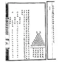 According to the history of the Song dynasty, Jia was a palace eunuch of the Left Duty Group. He studied under the mathematician Chu Yan, and was well versed in mathematics, writing many books on the subject. Jia Xian described the Pascal's triangle (Jia Xian triangle) around the middle of the 11th century, about six centuries before Pascal. Jia used it as a tool for extracting square and cubic roots. The original book by Jia entitled Shi Suo Suan Shu was lost; however, Jia's method was expounded in detail by Yang Hui, who explicitly acknowledged his source: "My method of finding square and cubic roots was based on the Jia Xian method in Shi Suo Suan Shu."[1] A page from the Yongle Encyclopedia preserved this historic fact.
