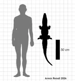 Jiangxisuchus is described as small to medium sized, something that appears to have been a trend among orientalosuchins.[2][8]
