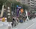 The Jidai Matsuri (時代祭; "Festival of the Ages") is a traditional Japanese festival (also called matsuri) held annually on October 22 in Kyoto, Japan. It is one of Kyoto's three major festivals, with the other two being the Aoi Matsuri, held annually on May 15, and the Gion Matsuri, which is held annually from 17 to July 24.[1] It is a festival enjoyed by people of all ages, participating in its historical reenactment parade dressed in authentic costumes representing various periods, and characters in Japanese feudal history.[2]