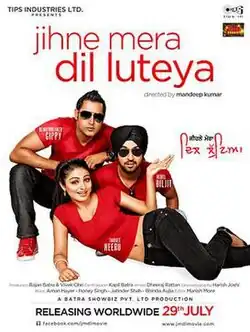 Jihne Mera Dil Luteya (transl. The one who stole my heart) is a 2011 Indian Punjabi language romantic comedy film directed by Mandeep Kumar with story and screenplay by Dheeraj Rattan, produced by Batra Showbiz Pvt. Ltd. and starring Gippy Grewal, Diljit Dosanjh, Neeru Bajwa, and Binnu Dhillon.[1]