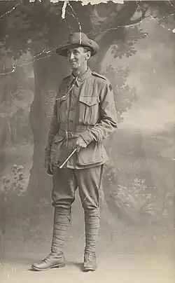 Embarking from Melbourne, Victoria, on HMAT Ulysses (A38) on 10 May 1915, he served overseas as a private in the 2nd Battalion, Australian Machine Gun Corps.