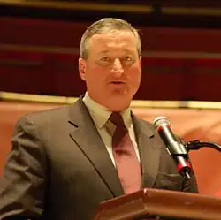 James Francis Kenney (born August 7, 1958) is an American politician who served as the 99th mayor of Philadelphia from 2016 to 2024. Kenney was first elected on November 3, 2015, defeating his Republican rival Melissa Murray Bailey after winning the crowded Democratic primary contest by a landslide on May 19.[1]
