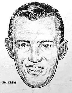 Krebs occasionally struggled with foul trouble while in the NBA. He once ranked ninth in the league in personal fouls,[5] and committed a playoff-record five fouls in one quarter during the fifth game of the 1963 NBA Finals.[6] Krebs also engaged in several fights with opposing players, including Boston's Bill Russell[7] and St. Louis' Bob Pettit.[8] Indeed, Russell once wrote, "Jim Krebs was known in the league as a man who was willing to go beyond the rules in getting his man."[7] Though he could be aggressive on the court, teammates described Krebs as fun-loving and charismatic. Los Angeles Times sportswriter Jim Murray once wrote, "Time and again I've seen him make a team that was about to cry, laugh."[9]