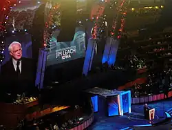On August 12, 2008, Leach broke party ranks to endorse Democrat Barack Obama over fellow Republican John McCain in the 2008 U.S. presidential election.[62] He spoke at the 2008 Democratic National Convention in Denver, Colorado, on the night of August 25, 2008.[63] He was introduced by Senator Tom Harkin, a fellow Iowan.[64]