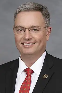 James Perry (born c. 1972) is a Republican politician who was a member of the North Carolina State Senate, representing the 7th district.[2] He was appointed to the state Senate on January 31, 2019 by Governor Roy Cooper, to replace Louis Pate, who resigned for health reasons.[3] He was chosen as Majority Whip for the 2021-2022 Biennium.[4] Perry was challenged in the 2020 Republican Primary. He won the primary with 66% of the vote and won 86% of the vote in his home county of Lenoir. At the general election he defeated his opponent by 11 points.